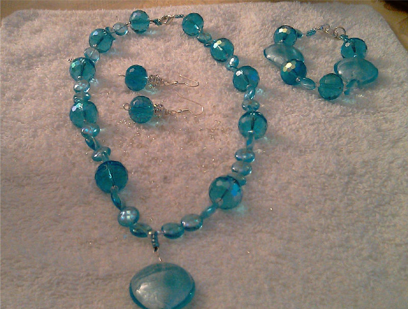 Blue glass crystal necklace, earrings and bracelet 40.00