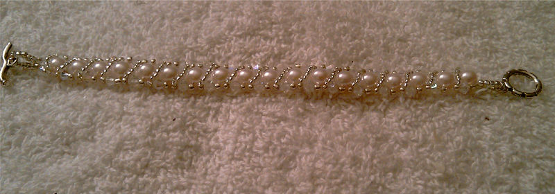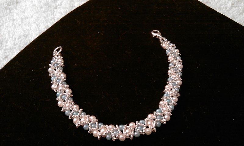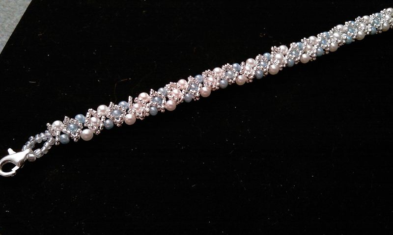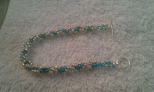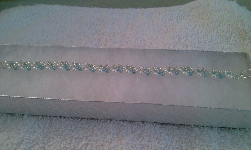 Blue and White Pearl with silver seed bead twist-silver plated clasp-$40.00
