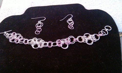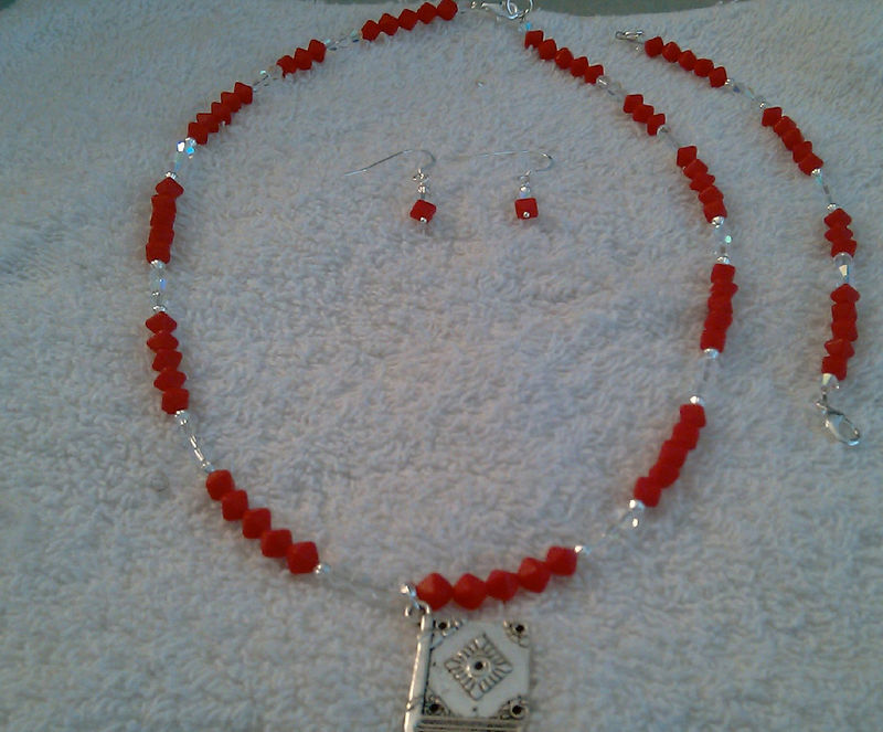 Red glass and clear crystal with silver plate clasp Necklace, Bracelet and Earrings-$40.00