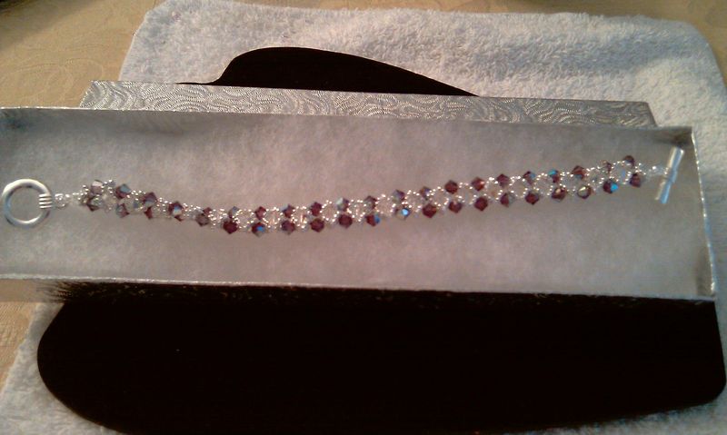 Plum Purple /White Crystals and sterling silver clasp $40.00