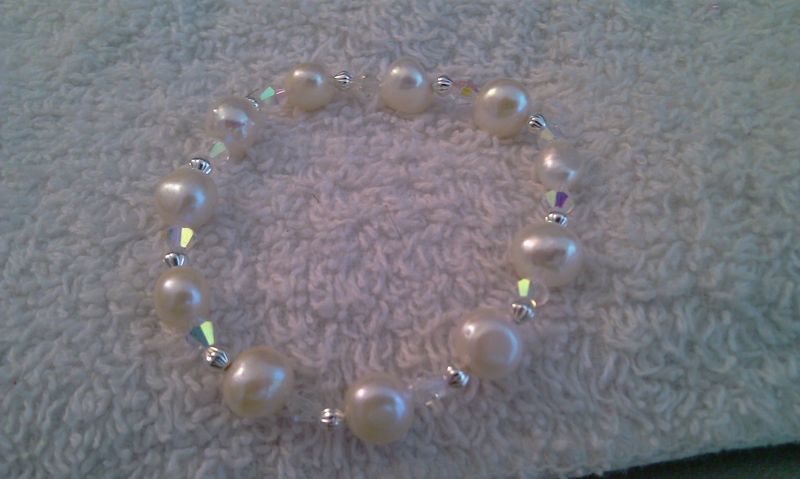 Pink Crystal Pearl Bracelet with sterling silver clasp 7.5 in 40.00
