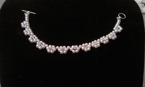 Purple crystal and White Pearl with Silver plate clasp $40.00